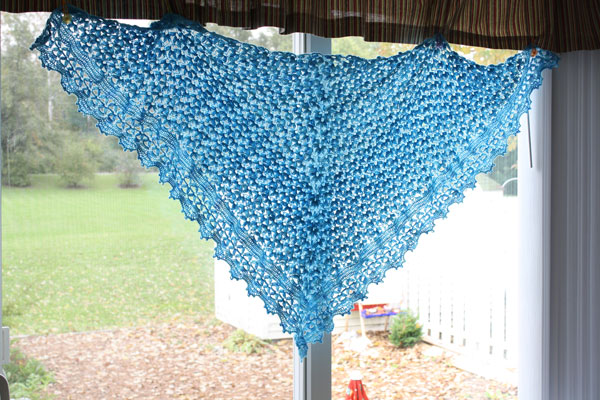 shawl-007 June 14, 2010 600 × 400 Cover: Midsummer Night’s Shawl, Interweave Crochet, Summer 2010! Before Blocking
