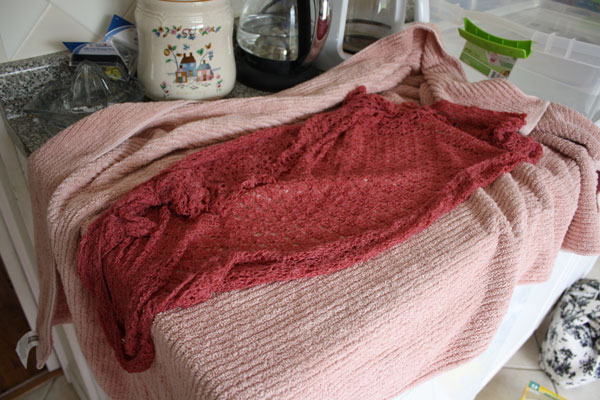 Place inside towel April 27, 2011 600 × 400 A Walkthrough In Blocking Lace – Dahlia Shawl Place inside towel