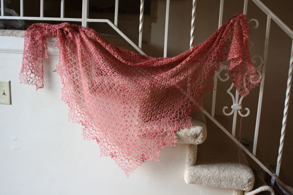 block-after-stairs April 27, 2011 600 × 400 A Walkthrough In Blocking Lace – Dahlia Shawl After Blocking