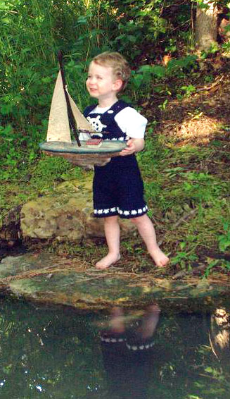 This photo was sent in to me by Shannon. She worked up the Chimes Of The Sea pattern (overalls for boys and girls). He looks like he is ready to go on an adventure across the sea! I thought she used black and white for the colors, and told her I would have never of thought of that color combination.. but actually, she used navy blue. (Need to get a new monitor one of these days!!). Turned out incredibly adorable, yet “manly,” and the setting right by the river just captured a little story of this little guy… Ahoy! Thank you Shannon for sending this in to me!