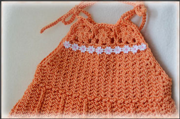 I had a lot of fun designing this dress. For a while now, I had a dress sketched that would begin at the top with little flower motifs, and then work down into the front and back panel, and then work from there in the rnd from the waist down.