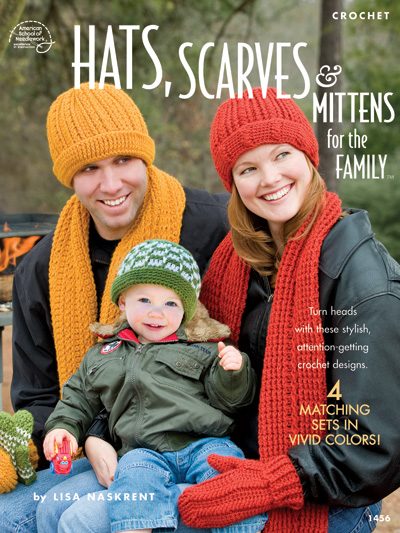 My newest booklet of patterns is out! Hats, Scarves and Mittens For The Family through Annie’s Attic!