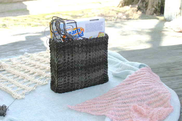 While working on the Oxford Town Bag for Interweave Crochet (Fall 2008 issue), here is the infant shawl in the background, still in its infancy stages. To get a chance of pace from the tote, I would sometimes work on the shawl before putting it back in the DIP pile.