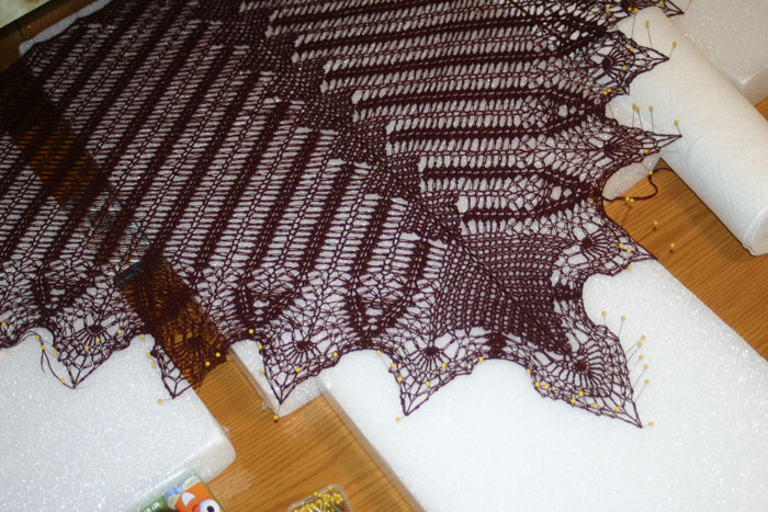I cannot tell you how many times this shawl was ripped out and reworked. And I will say, laceweight is not always that easy to rip out. I really needs the gentle touch… Kind of like with a toddler, you need to be gently, but firm. Too gentle, and nothing changes.. too firm, well, you may have throbbing ears for a while from that resistant one