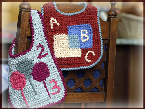 Second, I would like to announce my latest publications in the Spring issue of Interweave Crochet! I have 2 patterns in this issue. First, is Simply Bibs.